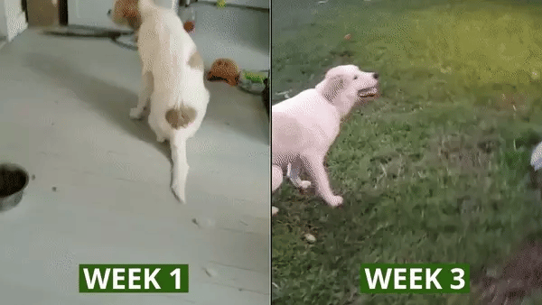 • Week two and she trotted to the door.